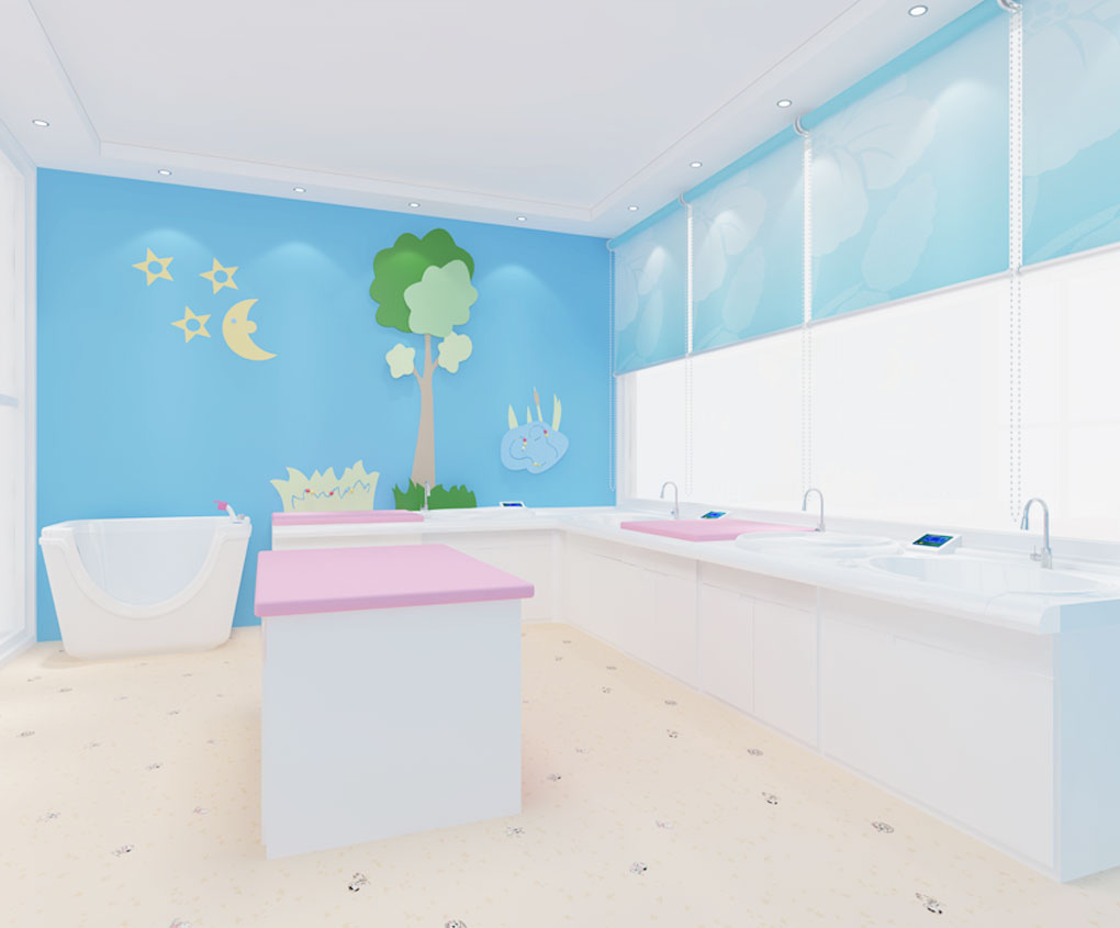 2.組成:嬰兒洗浴中心由嬰兒洗禮池,嬰兒游泳池,護(hù)理平臺(tái),撫觸軟包平臺(tái),洗手池組成。